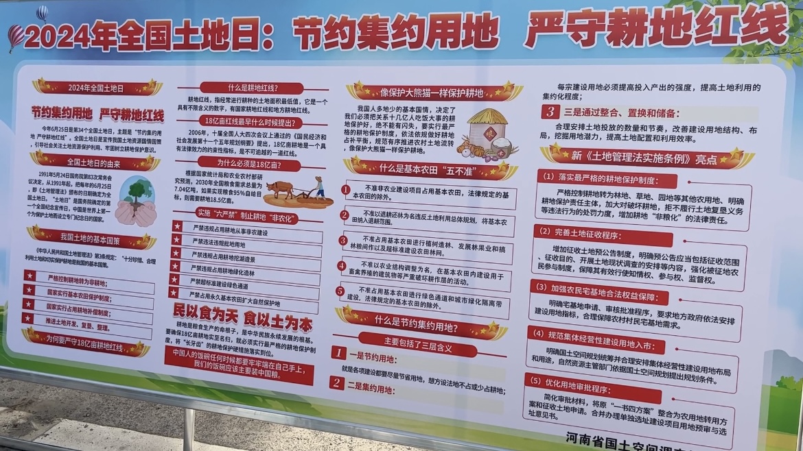 6月25日是第34个全国土地日。河南省自然资源厅以“节约集约用地 严守耕地红线”为主题,组织开展宣传活动。